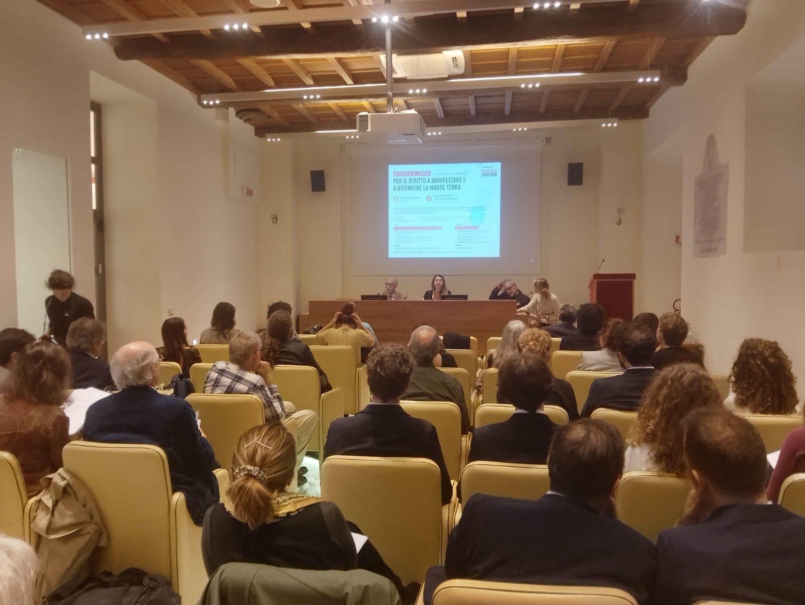 Un momento di informazione, condivisione di esperienze e denuncia della preoccupante situazione su repressione e libertà in Italia, in particolare per ciò che concerne il focus della rete In Difesa Di, ovvero la difesa e l’accompagnamento di attiviste ed attivisti per i diritti umani e la giustizia climatica sotto minaccia nel mondo: questo è stato il denso convegno internazionale “Per il diritto a manifestare e a difendere la Madre Terra”, che ha visto alternarsi voci di attiviste ed attivisti italiani dei movimenti per il clima, a giuristi di alto profilo sia italiani che internazionali, fra cui due esponenti dell’OSCE – Odhir e della Convenzione di Aarhus.