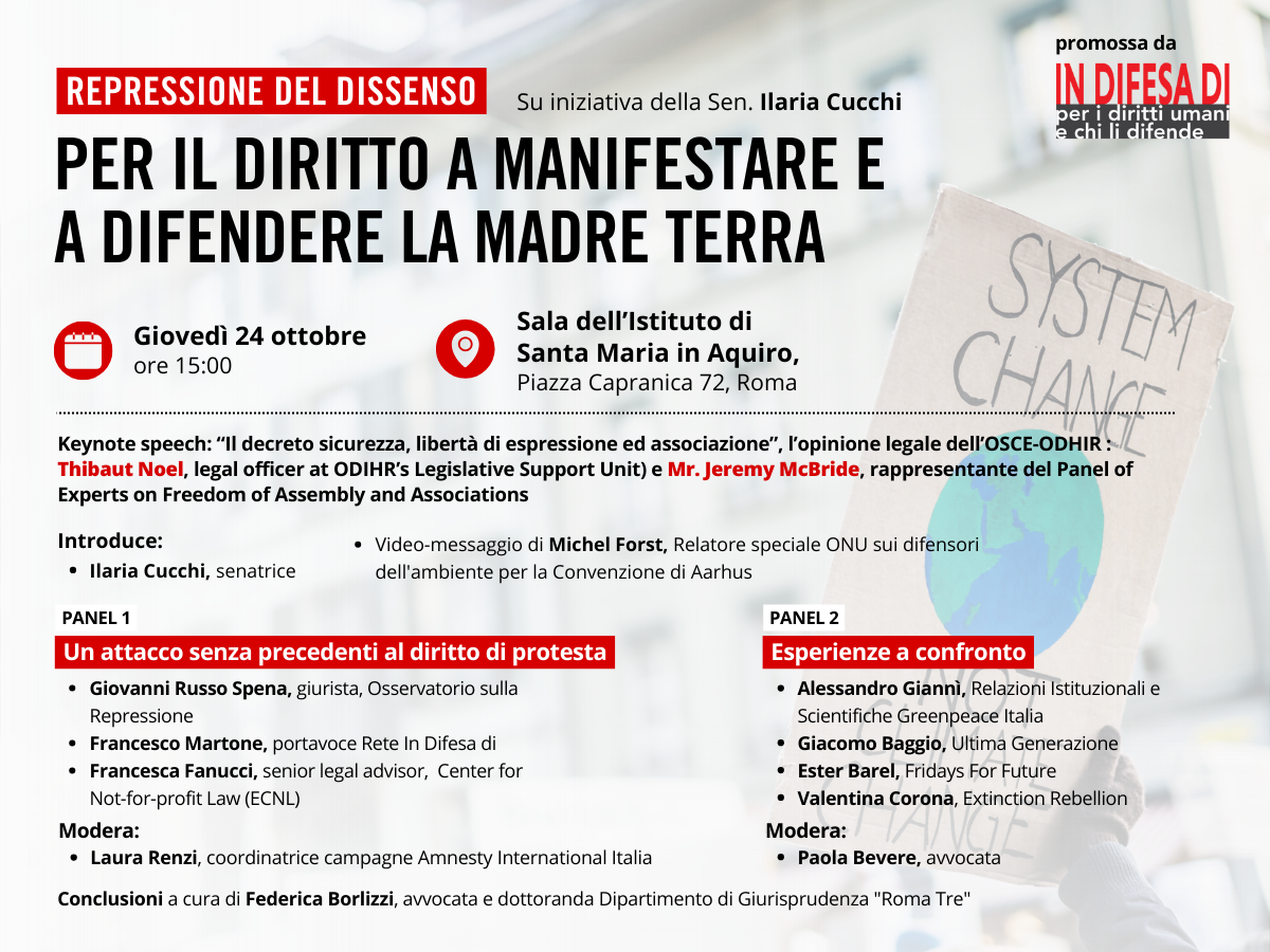 Giovedì 24 ottobre, ore 15 – Senato della Repubblica Sala dell’Istituto di Santa Maria in Aquiro Piazza Capranica 72, Roma Diritto alla protesta,…