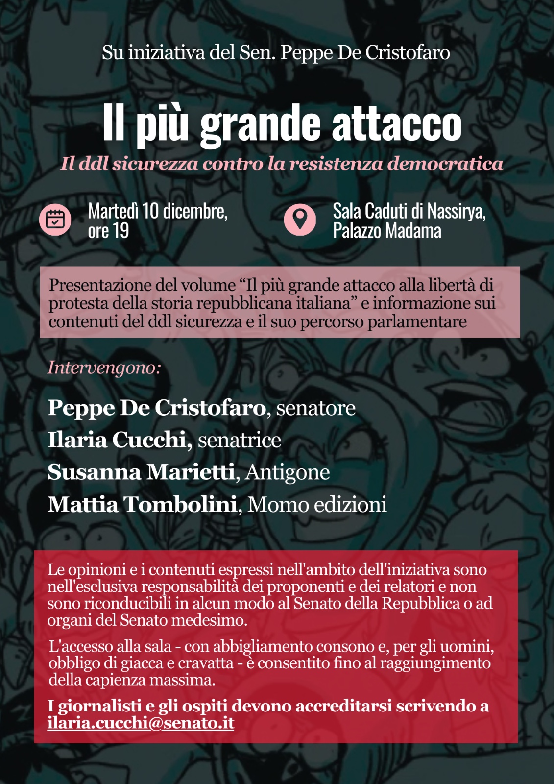 Promossa dal Senatore De Cristofaro, con la senatrice di AVS Ilaria Cucchi, Susanna Marietti di Antigone e Mattia Trombolini per Momo Edizioni, a…